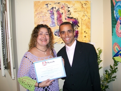 Bena Loyola exibe o diploma de chanceler, ao lado do presidente da A PLÊIADE, Carlos Conrado - Foto: Divulgação